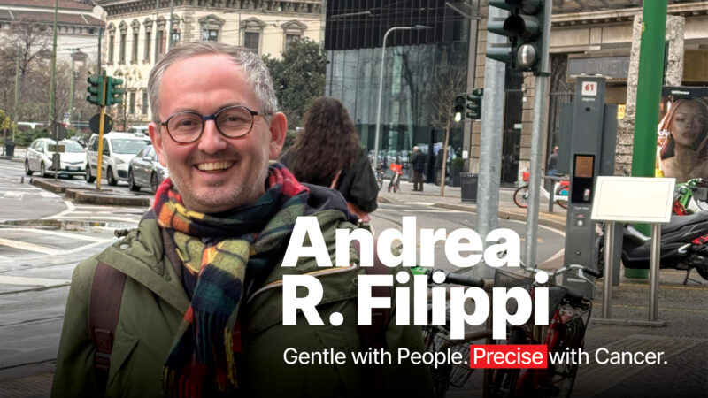 He names two: Prof. Corrado Tarella, the haematologist from the University of Turin who taught him “how to imagine new solutions for patients when the guidelines don’t tell you anything,” and Roberto Orecchia, scientific director of the European Institute of Oncology in Milan“a radiation oncologist who has a great vision, placing radiation therapy in the right context and looking at what happens around.”